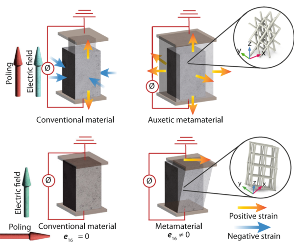 By designing metamaterial unit cells with various piezoelectric responses, such as maximized hydrostatic coefficients and auxetic behaviors, the research showcased the potential of this approach. The study highlights the ability to achieve selective piezoelectric coefficients and customize responses to specific applications, marking a significant advancement in the field of piezoelectric materials.