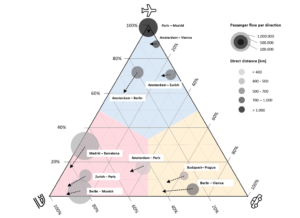 A study estimates the effects of Tradable Mobility Credits on Europe’s long-distance leisure travel, where emissions are capped by design and prices emerge from market equilibrium, resulting in a 20% demand reduction, air share dropping from 50% to 42%, and rail increasing from 23% to 32% under a 30% emission target. Emissions Challenge in Long-Distance