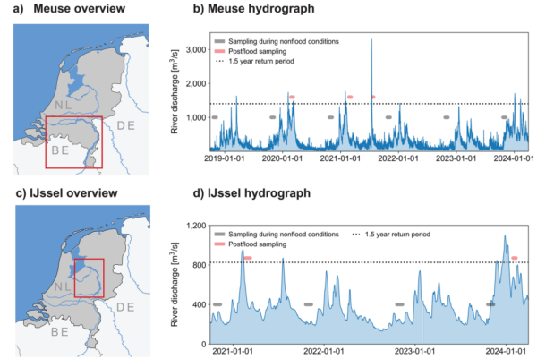 The study examined macroplastic deposition from 2018 to 2024 across 14 events, including five floods, along the Dutch Meuse and IJssel rivers. The Meuse is a rain-fed river covering 260 km in the Netherlands, while the IJssel is a 120 km distributary of the Rhine influenced by rain, snowmelt, and lake levels.