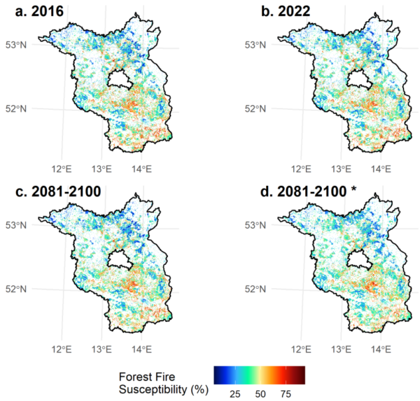 Reference: Katharina H. Horn, Stenka Vulova, Hanyu Li, and Birgit Kleinschmit. Modelling current and future forest fire susceptibility in north-eastern Germany. Nat. Hazards Earth Syst. Sci., 25, 383–401, 2025. DOI: https://doi.org/10.5194/nhess-25-383-2025
