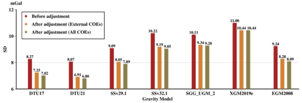 The significance of resolving these inconsistencies cannot be overstated. Accurate marine gravity data are essential for enhancing the properties of gravity field models derived from satellite altimetry, particularly in shallow water and coastal regions where altimetric data are less accurate. By enriching the short-wavelength components of the gravity signals and filling the gaps between altimetric tracks, a more complete and precise representation of the regional marine gravity field can be achieved. This, in turn, provides a more reliable basis for marine geoid modeling, enabling more precise geoid height estimates crucial for converting GNSS-derived ellipsoidal heights into orthometric heights and improving the determination of dynamic ocean topography and ocean circulation.