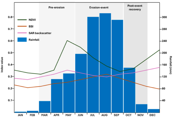 The study demonstrates how validated satellite indicators can be aligned with soil security dimensions and embedded into operational pathways that connect scientific evidence to policy-making. By integrating Earth observation data into decision frameworks, the research provides a practical route to identify erosion hotspots, target interventions, and track outcomes.