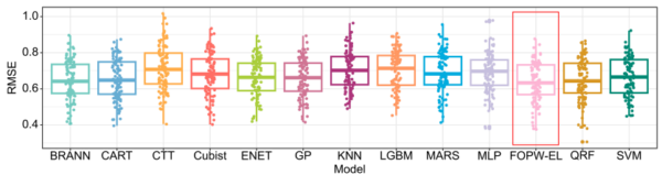 The results of this study demonstrate that the FOPW-EL model substantially outperformed all other models tested. The model achieved average validation metrics with a coefficient of determination (R²) of 0.752, a ratio of prediction to deviation (RPD) of 1.744, and a linear correlation consistency coefficient (LCCC) of 0.792. Additionally, the model exhibited low prediction uncertainty, with the global uncertainty index consistently below 0.39.