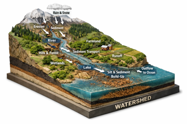 Sediment transport shapes river systems, floodplains, and coastal environments while supporting aquatic habitats and nutrient cycling. At the same time, excessive sediment degrades water quality, impairs ecosystems, accelerates reservoir sedimentation, and increases flood risks. Understanding the processes that govern sediment movement from hillslopes to river outlets is therefore essential for effective watershed management.